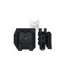 Na obou stranách jsou stejné montážní otvory pro opaskový klip nebo jiné příslušenství s roztečí děr 22,2 mm a pod ním matrici pro oblíbený Bladetech Tek-Lok se třemi svislými a vodorovnými řadami děr po 19 mm.