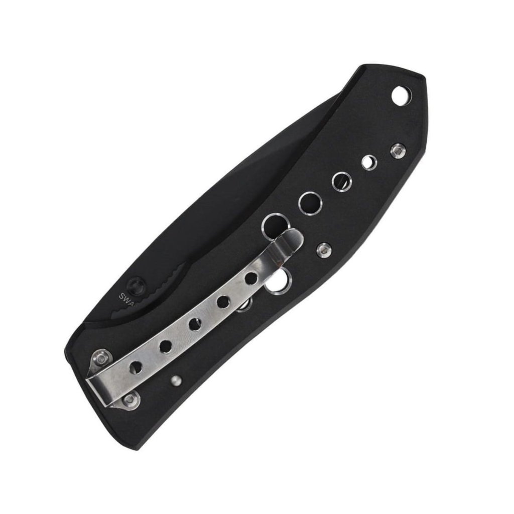 EDC zavírací nůž celočerné konstrukce. Čepel s hladkým ostřím a tvarem Drop point je vyrobená z nerezové oceli, přičemž v otevřeném stavu je jištěna pomocí pojistky Linerlock. Ke snadnému otevírání jednou rukou je možné využití kolíčku v horní části čepele. Střenky rukojeti disponují protiskluzovou texturou a na jejich výrobu byl použit hliník. Samozřejmostí je kapesní klip pro snadné přenášení a otvor na provlečení pojistné šňůry.