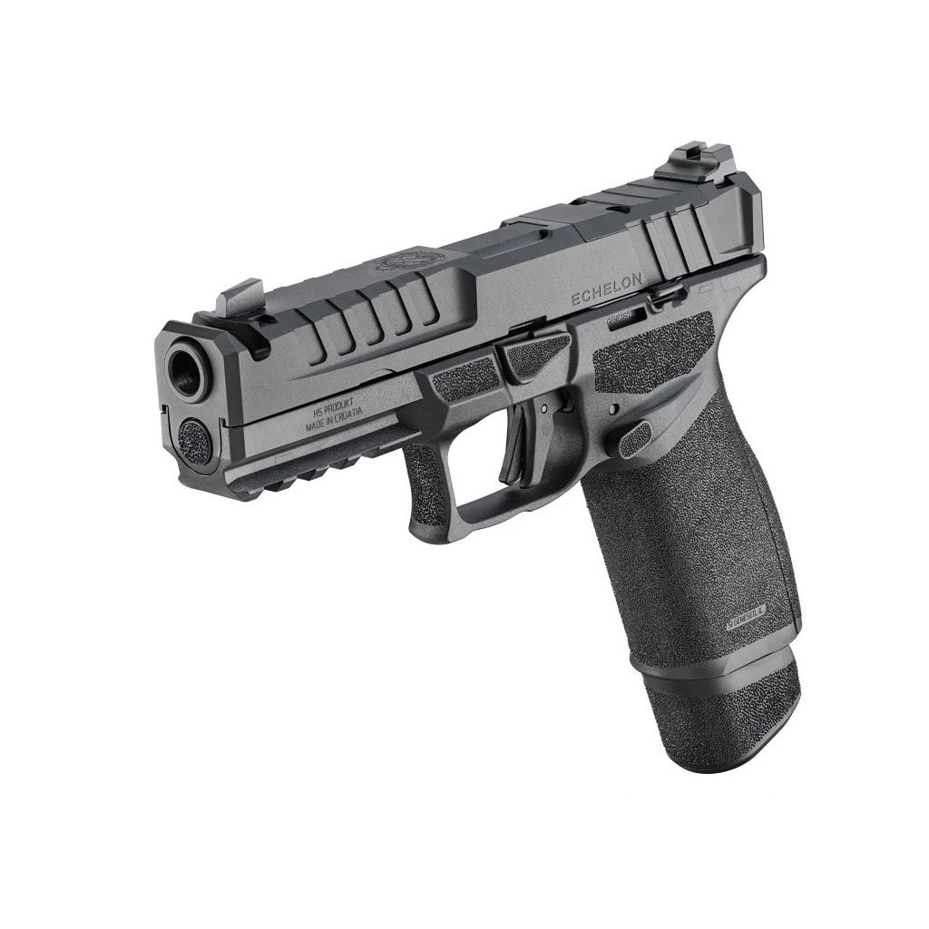 Celkový ergonomický ráz zbraně ještě podtrhuje syntetický rám s vyměnitelným zadním panelem a oboustrannými ovládacími prvky pro pravoruké i levoruké střelce. Echelon skutečně posouvá hranice pro moderní služební pistole.