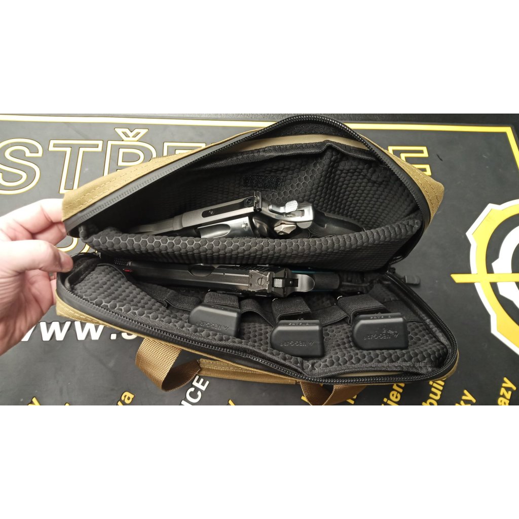 Praktická taška na jednu, či dvě krátké zbraně. Integrovaný držák na 10 pistolových zásobníků. Vodovzdorný zip.